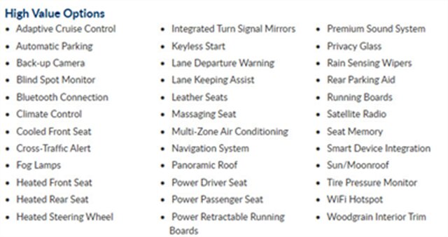 Vehicle Features & Options